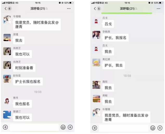 疫情就是命令!接到通知后,醫院護理部、院感處、醫務處立即動員部署,面對自愿報名申請,521醫院的醫護人員沒有退縮,大家紛紛秒回“我報名”,爭取上前線支援,斬釘截鐵的三個字表明了他們的態度和決心,8名醫護人員按時上報西安市衛健委,進入陜西省第二批醫療隊待命,以實際行動為湖北疫情防控做貢獻!