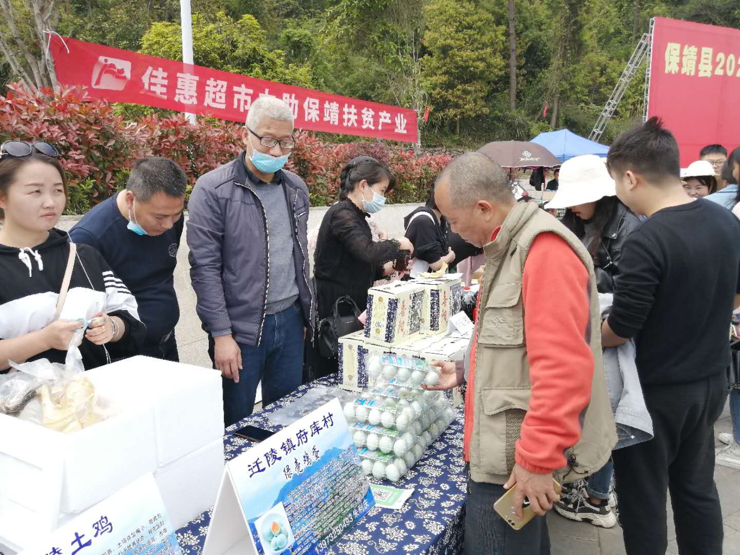 第一步便是養(yǎng)殖江漢綠殼雞,販賣綠殼土雞蛋。“林下自然放養(yǎng),生態(tài)自由采食,原生態(tài)富硒綠殼土雞蛋,1.5元/個,走過的路過的不要錯過啊……”這是朱利慶于“保靖縣2020年消費扶貧愛心認(rèn)購活動”上的推銷廣告詞。2020年4月9日,駐村工作隊又一次成功地把村集體經(jīng)濟,特色養(yǎng)殖——府庫綠殼土雞蛋推向了當(dāng)?shù)厥袌觯舜握逛N會共現(xiàn)場銷售2720個雞蛋,村集體當(dāng)天收入4080元并與多家單位洽談了長期意向銷售。工作隊又購進8000羽綠殼蛋雞苗,以此進一步擴大養(yǎng)殖規(guī)格,帶動老百姓一起增收。