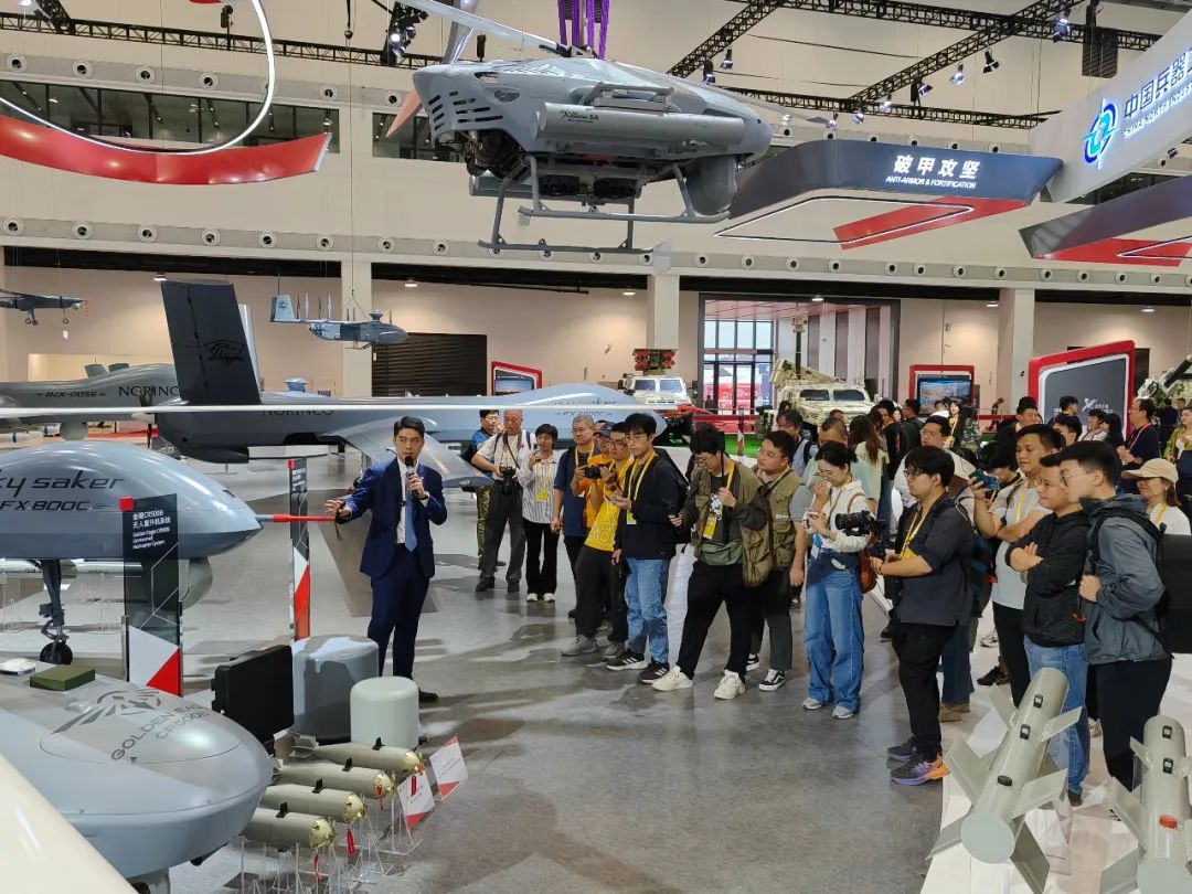第十五屆中國航展即將開幕,在中國兵器館,各種重量級的展品都已經(jīng)就位。在11月10日下午的“中國兵器媒體日”活動現(xiàn)場,數(shù)十家主流媒體來到中國兵器館進行“探館”。 本屆航展,兵器工業(yè)集團著重展示數(shù)智賦能軍貿(mào)合成旅作戰(zhàn)體系。“探館”現(xiàn)場,新聞發(fā)言人向記者團介紹了本屆航展集團公司參展亮點、明星產(chǎn)品和技術(shù)發(fā)展成果,并對VT5-U輕型坦克、VU-T10無人平臺、SR5多管火箭炮、金雕CR500B無人直升機系統(tǒng)、指揮控制中心等參展裝備和技術(shù)作了重點介紹,媒體記者進一步了解了裝備的性能和特點。在無人火力展區(qū),記者團還走進仿真訓練體驗區(qū),親身“使用”單兵武器,體驗裝備性能。 在參觀完兵器工業(yè)集團展區(qū)后,媒體記者們紛紛表示,中國兵器館給他們帶來了前所未有的沖擊感,尤其是本次參展的眾多新裝備,讓人耳目一新,更加期待幾天后的軍貿(mào)新品發(fā)布會。 |
